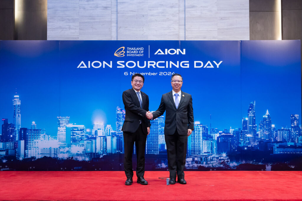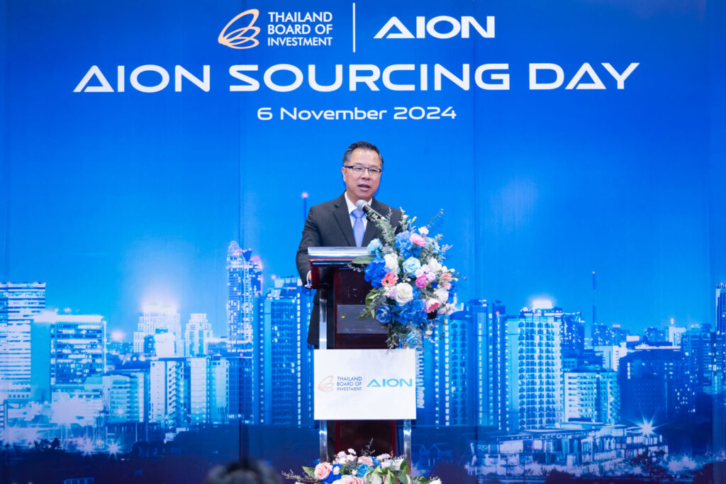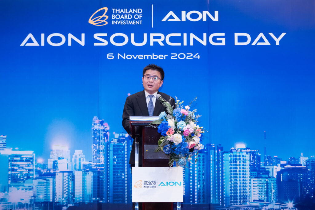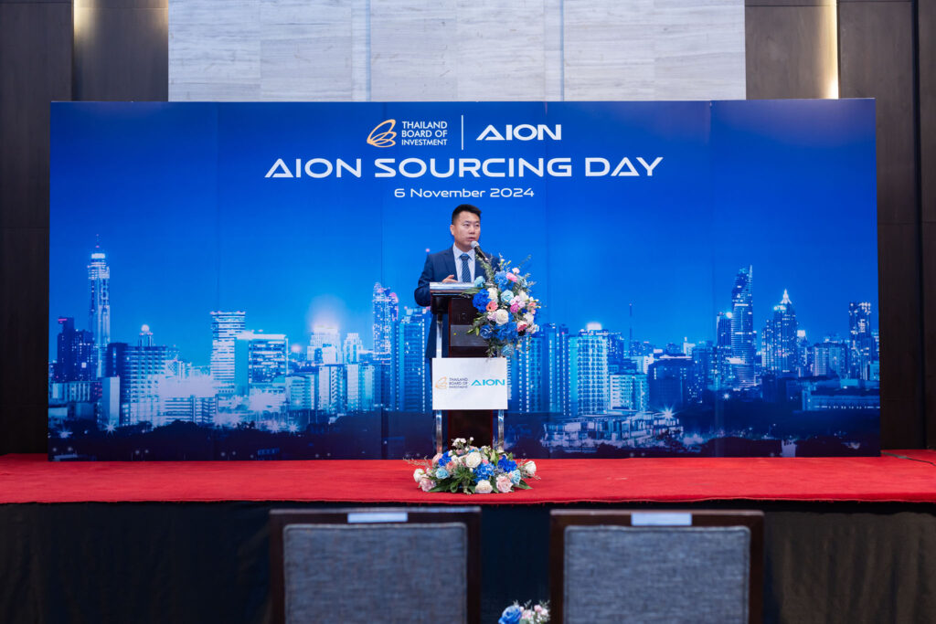 และเมื่อวันที่ 6 พฤศจิกายน 2567 นายนฤตม์ เทอดสถีรศักดิ์ เลขาธิการคณะกรรมการส่งเสริมการลงทุน (บีโอไอ) และ นายโอเชียน หม่า ประธานกรรมการบริหาร บริษัท ไอออน ออโตโมบิล แมนูแฟคเจอริ่ง (ประเทศไทย) จำกัด ได้ร่วมกันจัดงาน “GAC AION Sourcing Day” ณ โรงแรมรามา การ์เด้นส์ กรุงเทพฯ เพื่อจัดหาชิ้นส่วนจากผู้ผลิตในประเทศ สำหรับสายการผลิตรถยนต์ไฟฟ้าของบริษัท ที่จะเริ่มผลิตช่วงต้นปี 2568 ใน 7 กลุ่มชิ้นส่วนสำคัญ ได้แก่ Interior Parts Group, Exterior Parts Group, E&E Parts Group, Chassis Parts Group, Car Body Parts Group, Traction Motor Parts Group และ Battery Parts Group โดยมีบริษัทผู้ผลิตชิ้นส่วนกว่า 74 บริษัท เข้าร่วมงาน