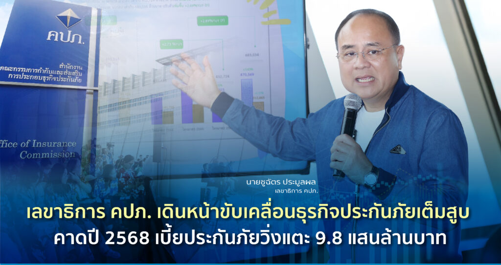 เลขาธิการ คปภ. เปิดเผยว่า แนวโน้มธุรกิจประกันภัยในปี 2568 สำนักงาน คปภ. ประมาณการว่า ภาพรวมธุรกิจประกันภัย (ม.ค.-ธ.ค.2568) จะมีเบี้ยประกันภัยรับโดยตรง 980,000 ล้านบาท มีอัตราการเติบโต 3.9% เมื่อเทียบกับช่วงเดียวกันของปีก่อน (ม.ค.-ธ.ค.2567) และคาดว่าในปี 2569 เบี้ยประกันภัยรับโดยตรงทั้งระบบน่าจะแตะที่ 1,000,000 ล้านบาท ในภาพรวมธุรกิจ ประกันภัยสุขภาพมีความโดดเด่นที่สุด สำนักงาน คปภ. ประมาณการว่า สิ้นปี 2567 ประกันภัยสุขภาพจะมีเบี้ยประกันภัยรับโดยตรงที่ 100,000 ล้านบาท และมีแนวโน้มเติบโตอย่างต่อเนื่องในปี 2568 ทั้งนี้ ภาคธุรกิจประกันภัยยังคงต้องติดตามปัจจัยท้าทายและปัจจัยความเสี่ยงต่าง ๆ อย่างใกล้ชิด โดยเฉพาะอย่างยิ่ง ความไม่แน่นอนจากเศรษฐกิจในประเทศและเศรษฐกิจโลก ซึ่งส่งผลต่อระดับอัตราดอกเบี้ย (Yield Curve) ที่ถึงแม้ว่าในช่วงที่ผ่านมาจะมีทิศทางที่ปรับสูงขึ้นแต่ยังต้องมีความระมัดระวังในการเลือกลงทุนในสินทรัพย์แต่ละประเภท รวมทั้งสงครามการค้าและความขัดแย้งระหว่างประเทศที่ส่งผลต่ออัตราเงินเฟ้อและอำนาจซื้อของประชาชน ส่งผลให้ค่าครองชีพสูงขึ้น ทำให้ประชาชนเริ่มชะลอการใช้จ่ายมากขึ้น รวมถึงความไม่แน่นอนของสถานการณ์การเมืองทั้งในและต่างประเทศที่ส่งผลต่อความเชื่อมั่นของผู้บริโภคและนักลงทุน โดยภาคธุรกิจต้องติดตามอย่างใกล้ชิดและสามารถปรับเปลี่ยนทิศทางกลยุทธ์การดำเนินงานของบริษัทประกันภัยไปตามสถานการณ์อย่างทันท่วงที