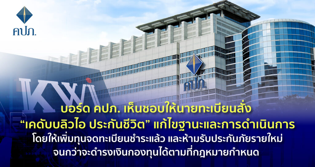 ตามที่สำนักงานคณะกรรมการกำกับและส่งเสริมการประกอบธุรกิจประกันภัย (สำนักงาน คปภ.) ได้ติดตามสถานะทางการเงินของบริษัท เคดับบลิวไอ ประกันชีวิต จำกัด (มหาชน) อย่างใกล้ชิด พบว่า บริษัทมีเงินกองทุนต่ำกว่าที่กฎหมายกำหนด ซึ่งบริษัทได้ยื่นโครงการเพื่อแก้ไขฐานะเงินกองทุน (โครงการฯ) และนายทะเบียนได้ให้ความเห็นชอบโครงการฯ ตามที่บริษัทเสนอ โดยกำหนดเงื่อนไขและเงื่อนเวลาให้บริษัทต้องปฏิบัติ ต่อมาในวันที่ 29 พฤศจิกายน 2567 ซึ่งเป็นวันครบกำหนดที่บริษัทต้องเพิ่มทุนจดทะเบียนชำระแล้ว จำนวน 35 ล้านบาท ปรากฏว่า บริษัท ไม่สามารถดำเนินการได้ตามโครงการฯ ประกอบกับปรากฏข้อเท็จจริงเกี่ยวกับฐานะและการดำเนินการของบริษัท ดังนี้