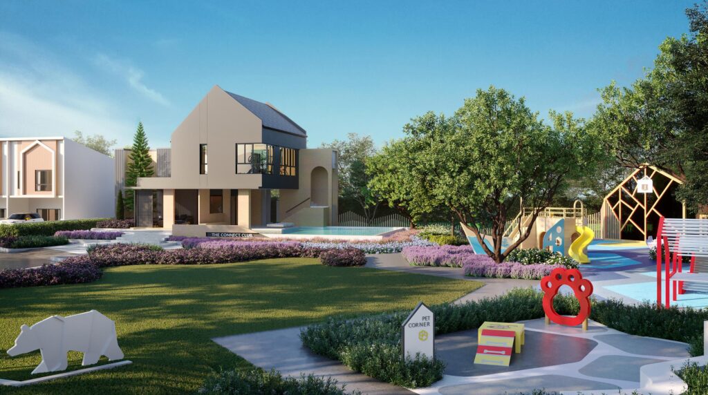 - ส่งเสริมการใช้ชีวิตที่สมบูรณ์แบบ ด้วยสาธารณูปโภคส่วนกลางที่ครบครันบนพื้นที่สีเขียว ทั้ง คลับเฮ้าส์ สระว่ายน้ำ สวนสาธารณะ สนามเด็กเล่น ที่จะทำให้ทุกคนได้ใช้เวลาทำกิจกรรมร่วมกัน โดยไม่ต้องเดินทางไปพักผ่อนนอกบ้าน