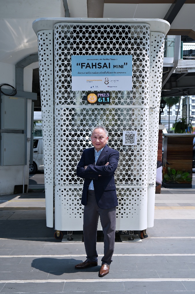 หอฟอกอากาศ ‘ฟ้าใส มินิ’ (FAHSAI mini) นับเป็นโมเดลใหม่ล่าสุดที่มีขนาดเหมาะสมและสะดวกในการติดตั้งในย่านราชประสงค์ มีประสิทธิภาพลดฝุ่นพิษลงได้ถึง 60,000 ลูกบาศก์เมตรต่อชั่วโมง ครอบคลุมพื้นที่รัศมีรอบตัวหอฟอกอากาศประมาณ 50 X 50 เมตร ความสูงประมาณ 5 เมตร (พื้นที่ประมาณ 12,500 ลูกบาศก์เมตร) เทียบเท่าขนาดหนึ่งสนามฟุตบอลขนาดใหญ่ และได้มีการตรวจวัดประสิทธิภาพการฟอกอากาศอย่างต่อเนื่อง และในเดือนมกราคมที่ผ่านมา ยังพบด้วยว่า ‘ฟ้าใส มินิ’ (FAHSAI mini) สามารถลดค่าฝุ่นได้ถึง 60% “เราหวังว่าฟ้าใส มินิ (FAHSAI mini) จะเป็นต้นแบบของโครงการที่ช่วยให้เมืองไทยสามารถรับมือกับปัญหาฝุ่น PM2.5 ได้อย่างเป็นรูปธรรม และหวังว่าจะมีการขยายโครงการไปยังพื้นที่อื่น ๆ ในอนาคต เพื่อให้ประชาชนสามารถสูดอากาศบริสุทธิ์และมีคุณภาพชีวิตที่ดีขึ้น” รศ.ดร.สิงห์ อินทรชูโตกล่าวสรุป