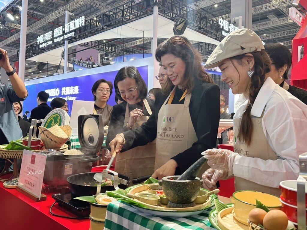 ไปจีนปริมาณ 523,518 ตัน เพิ่มขึ้นจากช่วงเดียวกันของปี 2567 ที่ส่งออกปริมาณ 210,201 ตัน หรือเพิ่มขึ้นร้อยละ 149.06 โดยส่วนใหญ่เป็นข้าวขาว (ร้อยละ 74) รองลงมา คือข้าวเหนียว (ร้อยละ 18) และข้าวหอมมะลิไทย (ร้อยละ 5) ที่เหลือเป็นข้าวหอมไทย ข้าวนึ่ง และข้าวกล้อง ดังนั้น การเข้าร่วมงาน CIIE จะเป็นอีกช่องทางหนึ่งในการช่วยกระตุ้นความต้องการข้าวไทย และรักษาส่วนแบ่งตลาดข้าวไทยในจีนต่อไป