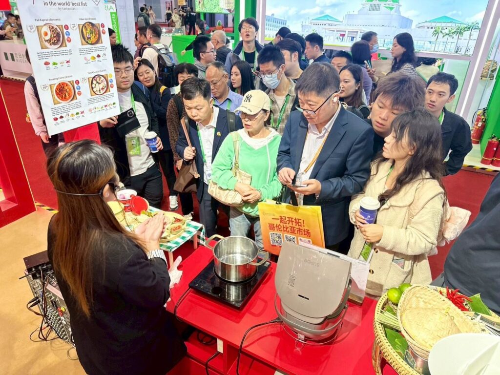 กรมฯ ได้เข้าร่วมงาน CIIE 2025 เป็นปีที่ 3 ติดต่อกัน โดยได้จัดกิจกรรมประชาสัมพันธ์ข้าวไทยบนพื้นที่ Thailand Pavilion ของกรมส่งเสริมการค้าระหว่างประเทศในส่วนของ Country Exhibition ภายใต้แนวคิด “ศาลาไทย” ที่เน้นนำเสนอสินค้าอาหารไทย “Thai SELECT” และความหลากหลายของข้าวไทย สินค้าไลฟ์สไตล์และสุขภาพ–สปา “Thai Style” สินค้าที่ได้รับตราสัญลักษณ์ T Mark และ PM Award และจุดเด่นการท่องเที่ยวของไทย “Thai Experiences” โดยเมื่อวันที่ 6 พฤศจิกายน 2568 กรมส่งเสริมการค้าระหว่างประเทศได้จัดพิธีเปิด Thailand Pavilion ซึ่งได้รับเกียรติจาก ดร. กิริฎา เภาพิจิตร ผู้ช่วยรัฐมนตรีประจำกระทรวงพาณิชย์ เป็นประธานและยังได้เข้าเยี่ยมชมคูหาของกรมการค้าต่างประเทศ โดยได้ร่วมสาธิตการทำเมนูผัดกะเพราหมูสับทานคู่กับข้าวหอมมะลิไทย แจกให้ผู้เข้าเยี่ยมชมคูหาได้ทดลองชิม ซึ่งได้รับความสนใจเป็นอย่างมาก และต่างชื่นชมในความหอม ความนุ่ม และรสชาติของข้าวหอมมะลิไทย พร้อมแสดงความสนใจซื้อเพื่อนำกลับไปหุงทานที่บ้านและซื้อเป็นของขวัญในช่วงเทศกาลสำคัญของจีน นอกจากนี้ ในคูหาของกรมการค้าต่างประเทศยังได้จัดกิจกรรมสำคัญ ได้แก่ การจัดนิทรรศการและการจัดแสดงตัวอย่างข้าวไทยชนิดต่างๆ การจัดกิจกรรมให้ผู้เข้าเยี่ยมคูหาร่วมตอบคำถามเกี่ยวกับวิธีการเลือกซื้อข้าวหอมมะลิไทยเพื่อรับของที่ระลึก และการสาธิตการปรุงอาหารไทยทานคู่กับข้าวหอมมะลิไทยวันละ 2 รอบ โดยได้รับความสนใจจากผู้นำเข้า ผู้ซื้อและผู้บริโภคชาวจีน รวมทั้งสื่อมวลชนของจีน ตลอดการจัดงาน 6 วัน ประมาณ 5,000 คน
