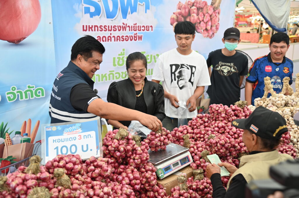รองอธิบดีกรมการค้าภายใน กล่าวเพิ่มเติมว่า ปัจจุบันเป็นช่วงที่ผลผลิตหอมหัวใหญ่และหอมแดงออกสู่ตลาดในปริมาณมาก กรมฯ จึงเร่งดำเนินมาตรการกระจายผลผลิตไปยังพื้นที่ต่าง ๆ เพื่อรองรับผลผลิตที่ออกกระจุกตัว ควบคู่กับการรักษาเสถียรภาพราคา และการเพิ่มช่องทางการตลาดให้เกษตรกรสามารถจำหน่ายผลผลิตได้อย่างต่อเนื่อง โดยมีการนำสินค้าจากเกษตรกร อาทิ หอมหัวใหญ่จากจังหวัดเชียงใหม่ หอมแดงและกระเทียมจากจังหวัดศรีสะเกษ และจากพื้นที่ภาคเหนือ มาจำหน่ายภายในงาน สำหรับสินค้าไฮไลท์ภายในงาน ได้แก่ ไข่ไก่เบอร์ M แผงละ 80 บาท น้ำมันปาล์มขวดละ 35 บาท น้ำตาลทรายกิโลกรัมละ 20 บาท และข้าวหอมมะลิถุง 5 กิโลกรัม ราคา 120 บาท รวมถึงหอมแดงจากเกษตรกรจังหวัดศรีสะเกษ จำหน่ายกิโลกรัมละ 40 บาท จากราคาตลาดทั่วไปกิโลกรัมละ 60 บาท และหอมหัวใหญ่เบอร์ 2–3 จากสหกรณ์ผู้ปลูกหอมหัวใหญ่แม่วาง จังหวัดเชียงใหม่ จำหน่ายกิโลกรัมละ 20 บาท จากราคาตลาดทั่วไปกิโลกรัมละ 30–50 บาท ซึ่งเป็นการเชื่อมโยงผลผลิตจากแหล่งผลิตโดยตรงสู่มือผู้บริโภคนอกจากนี้ กรมการค้าภายในยังได้มอบถุงยังชีพให้แก่ประชาชนในพื้นที่อำเภออรัญประเทศ อำเภอตาพระยา อำเภอคลองหาด และอำเภอโคกสูง เพื่อช่วยเหลือพี่น้องประชาชนในเขตพื้นที่ชายแดนที่ได้รับผลกระทบและประสบปัญหาความเดือดร้อน