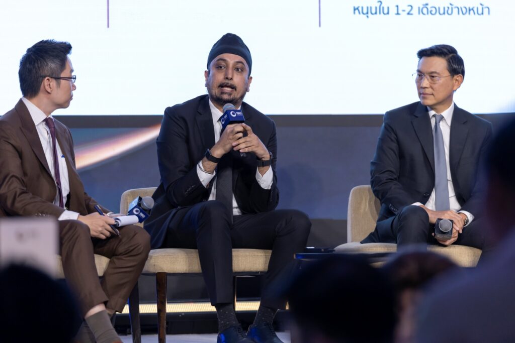ด้าน คุณดารบุษป์ ปภาพจน์ กรรมการผู้จัดการ บริษัทหลักทรัพย์จัดการกองทุน อีสท์สปริง (ประเทศไทย) จำกัด และคุณสาห์รัช ชัฏสุวรรณ กรรมการผู้จัดการ บริษัทหลักทรัพย์จัดการกองทุน ทิสโก้ จำกัด ร่วมให้มุมมองว่าหุ้นกลุ่มเทคโนโลยี โดยเฉพาะ AI และกลุ่มไบโอเทค (Biotechnology) ยังคงเป็นอุตสาหกรรมแห่งอนาคตที่มีศักยภาพสูงในการสร้างผลตอบแทนระยะยาว จากแรงขับเคลื่อนของการเปลี่ยนแปลงเชิงโครงสร้างและนวัตกรรมที่พัฒนาอย่างต่อเนื่อง โดย AI กำลังก้าวเข้าสู่จุดเปลี่ยนสำคัญจากการพัฒนาเพื่อฝึกฝน (Training) สู่การนำไปใช้งานจริง (Inference) ซึ่งหนุนความต้องการชิปเฉพาะทาง โครงสร้างพื้นฐานดาต้าเซ็นเตอร์ และพลังงานขั้นสูง ส่งผลให้โอกาสการลงทุนขยายไปสู่ซอฟต์แวร์ พลังงาน และแพลตฟอร์มที่ช่วยเพิ่มประสิทธิภาพทางธุรกิจ ขณะที่กลุ่มไบโอเทคยังคงได้แรงหนุนจากสังคมผู้สูงอายุ การนำ AI มาย่นระยะเวลาวิจัยยา และกระแสควบรวมกิจการ สะท้อนโอกาสสร้างผลตอบแทนที่โดดเด่นท่ามกลางความผันผวน ภายใต้การวางกลยุทธ์และการลงทุนที่เหมาะสม